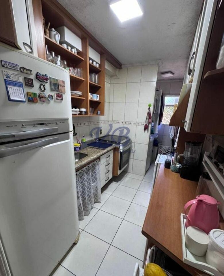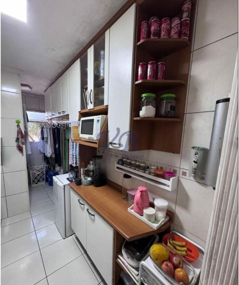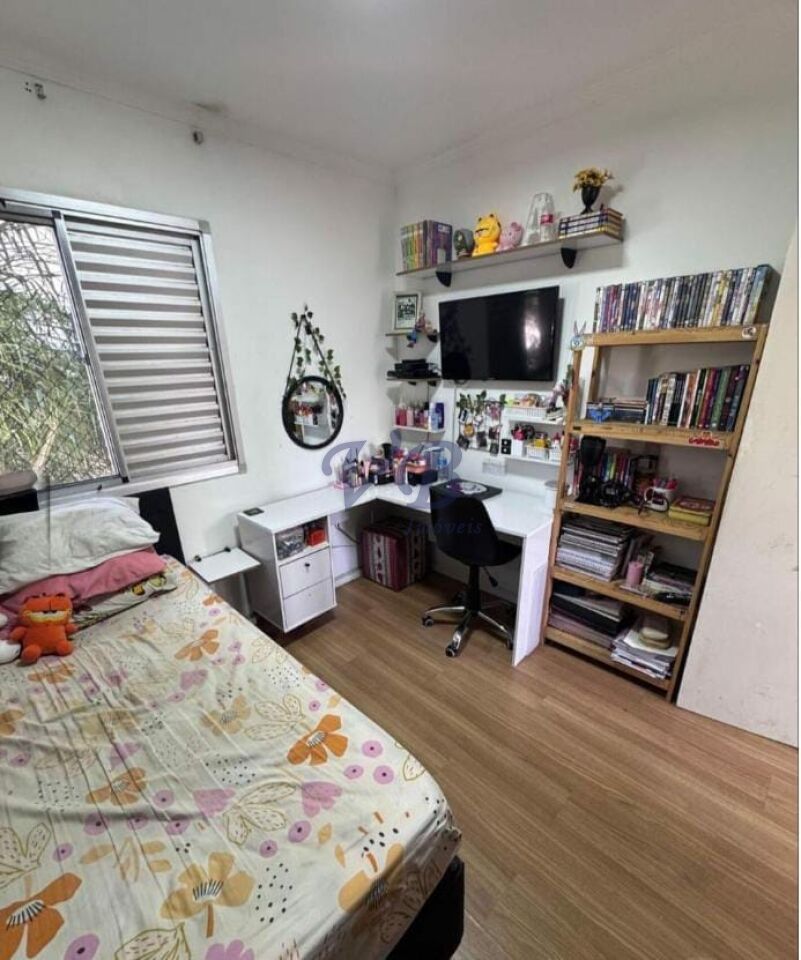 O condomínio oferece salão de festas, salão de jogos, brinquedoteca, academia, churrasqueira e tem custo mensal de R$678,95
