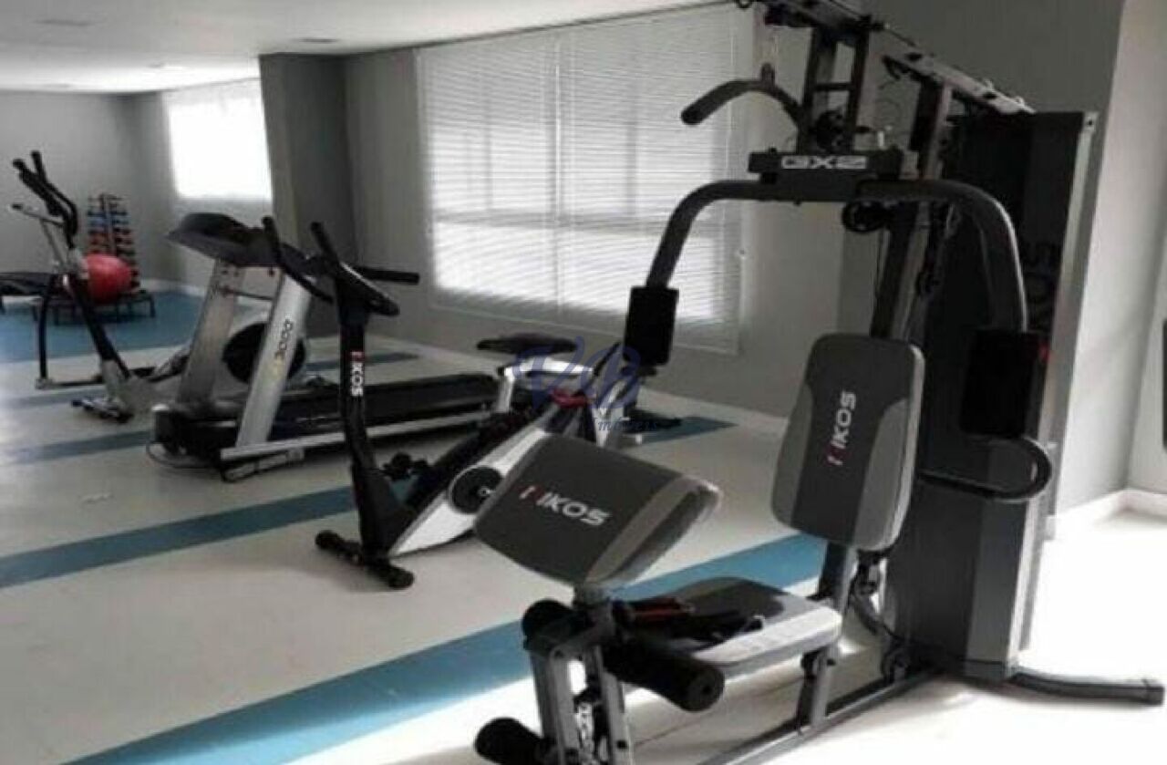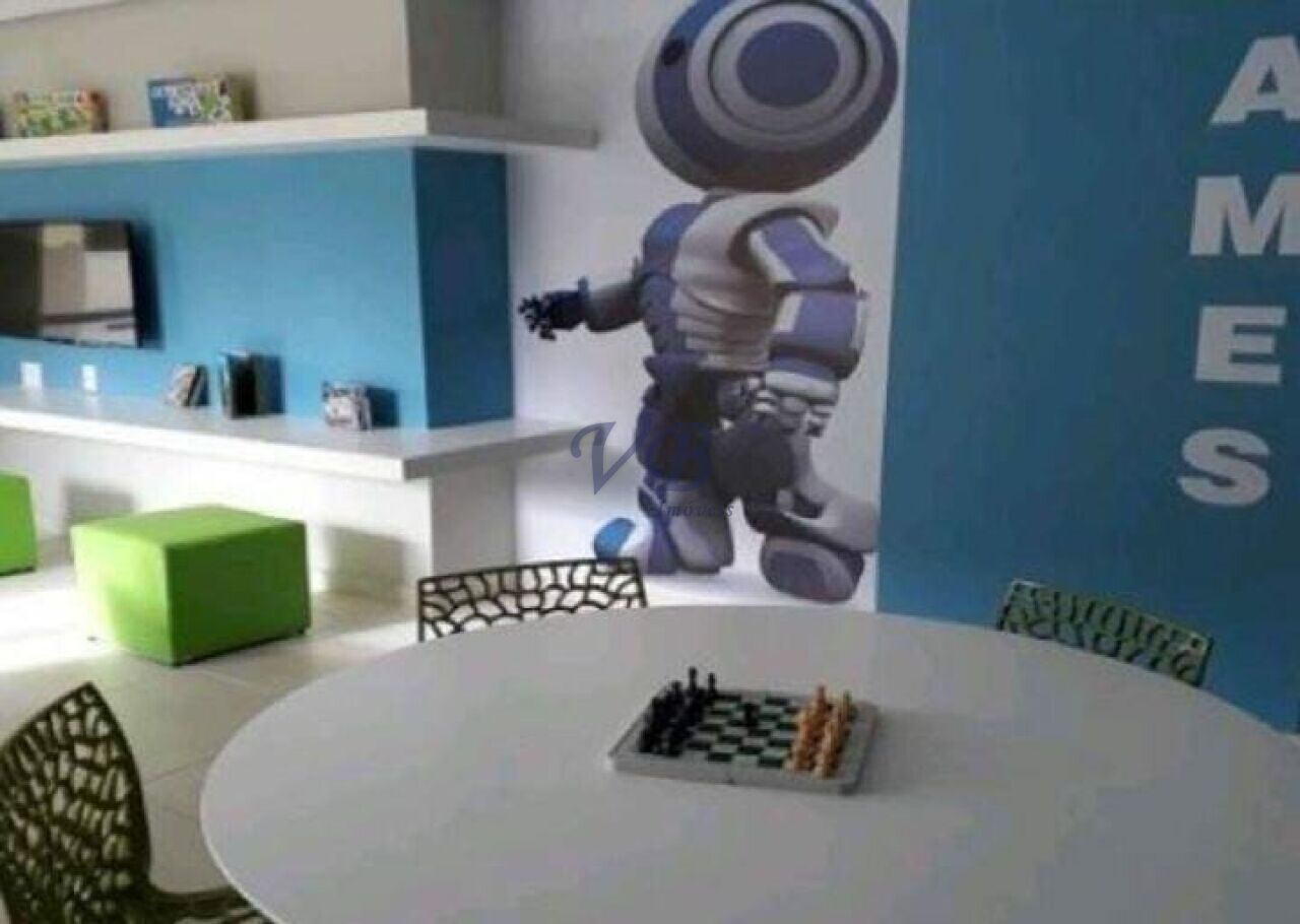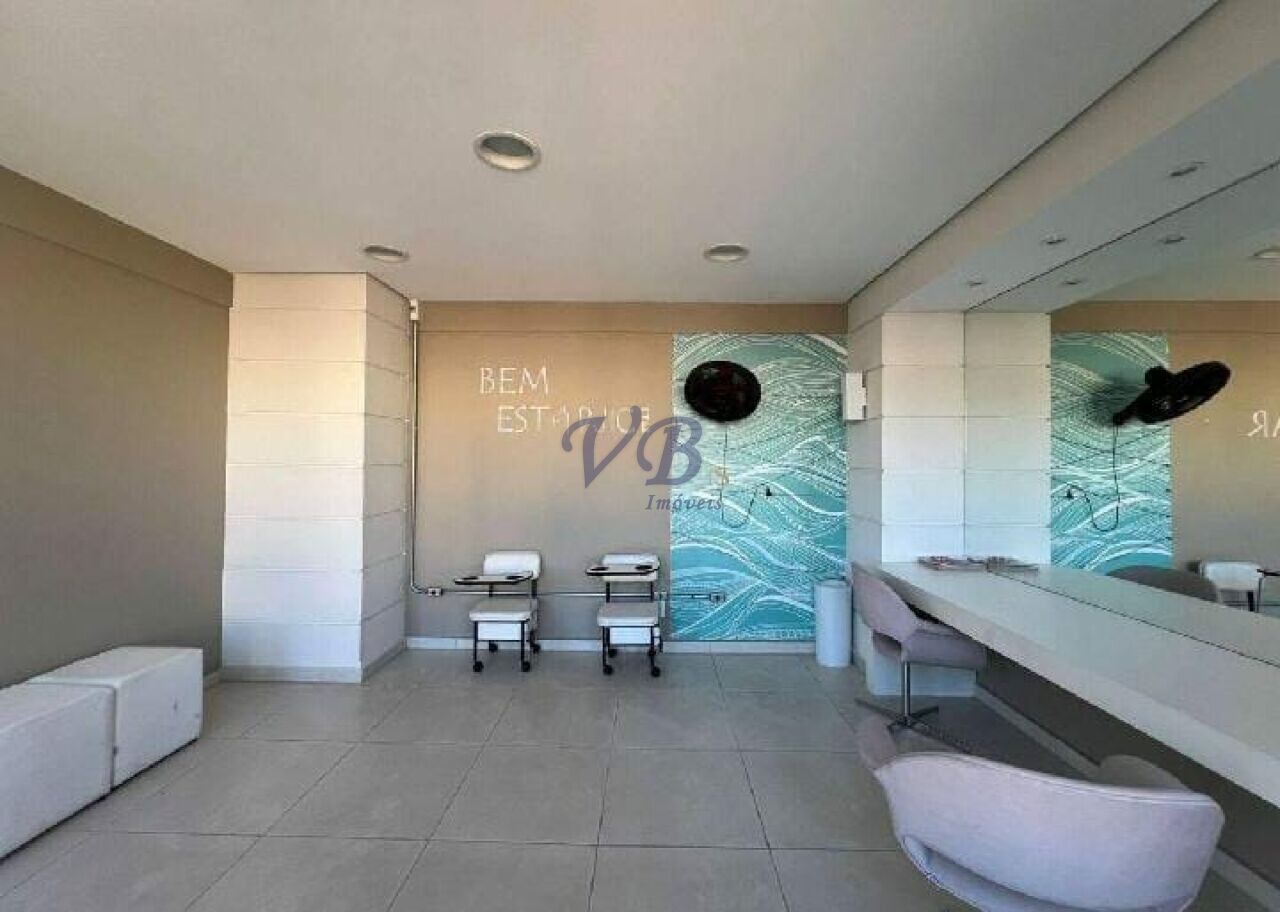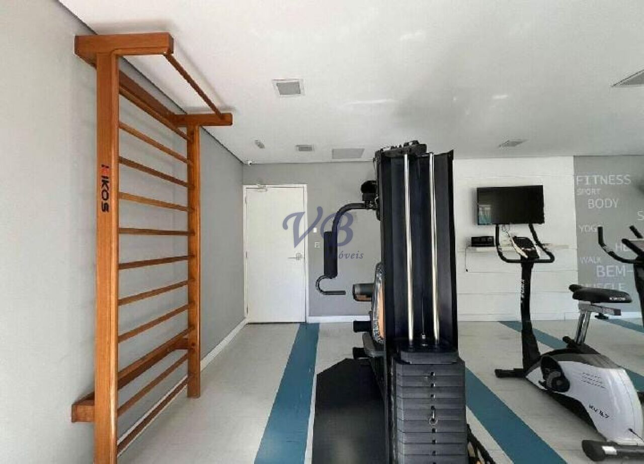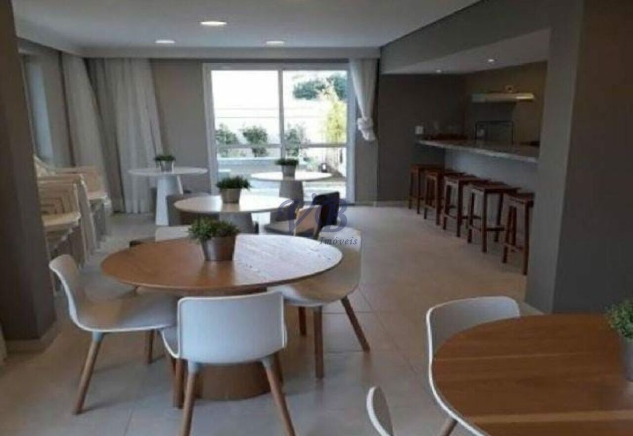 O condomínio oferece piscina, salão de festas, churrasqueira, academia e tem custo mensal de R$685,00