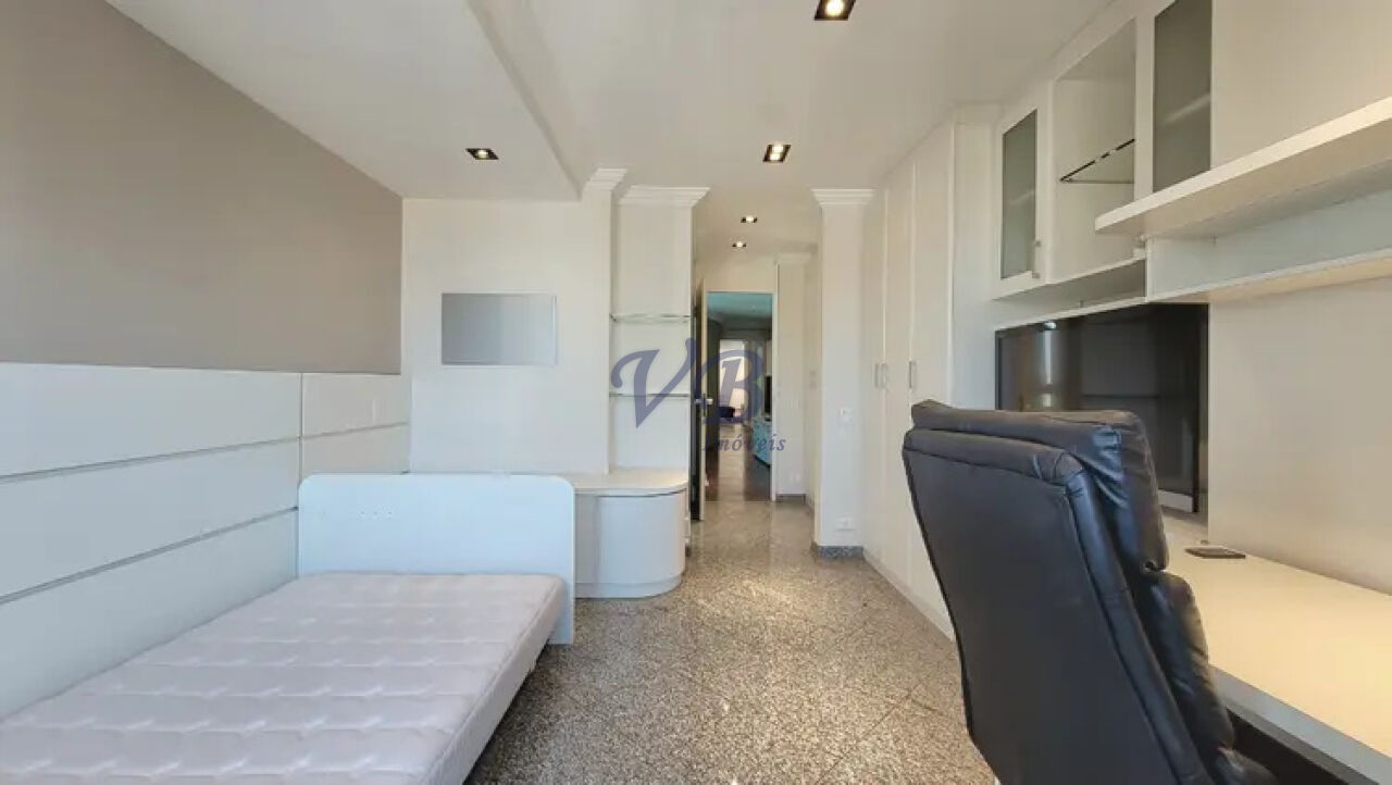A sala íntima conecta as três suítes da família, proporcionando um ambiente mais reservado e acolhedor. O escritório, com vista livre, é ideal para quem busca um espaço inspirador para trabalho ou estudo. A cozinha é ampla e prática, com sala de almoço integrada, lavanderia separada e uma quarta suíte atualmente utilizada como dependência de serviço.